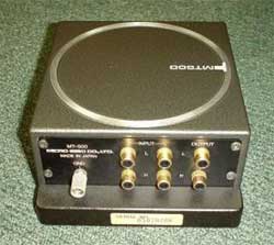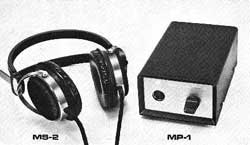 Komponenten MS-2 und MP-1 Elektrostatischer Kopfhörer mit Adapter MT-500 (aehnlich wie MT-1000) MC Step Up Transformer Frequenz: 20Hz - 50kHz fuer low input MC:s 1:48 (0,07-0,1 mV) und high input MC.s 1:12 (0,2 - 0,4 mV) Systeme 3 - 100 Ohm Innenwiderstand ca-Werte ermittelt fuer Last 47 kOhm und Eingangsempf. 3 - 5 mV MT-500 Rueckseite MTA-41 Step Up Transformer fuer MC-4100/E 5Hz - 40 kHz MX-1 Elektrostatischer Kopfhoerer mit Adapter MX-5 Elektrostatischer Kopfhoerer mit Adapter